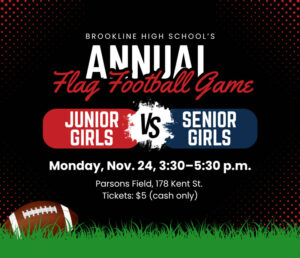 It’s time to get ready for one of Brookline High School’s favorite traditions — the Junior vs. Senior Girls Flag Football game!